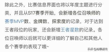 S17赛季的爆料真是让人兴奋不已!无论是全新英雄的加入,还是游戏界面的升级,都让人期待不已。相信在S17赛季,我们将会体验到更加精彩的游戏内容。那么,就让我们一起期待吧!